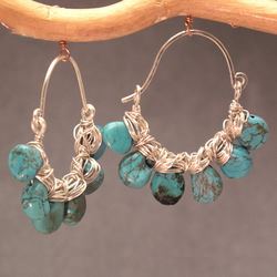 Metal: GoldHammered hoops with turquoise, about 1-1/2" long. Available in either 14K gold-filled, rose gold-filled, or sterling silver. All jewelry is entirely handmade in our studio in New York.