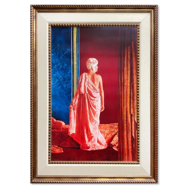"Siren" is a limited edition on canvas with gold leaf by Angelo Vadala, numbered 20/195 and hand signed. This piece comes framed. Includes Letter of Authenticity. Measures approx. 57" x 42.5" (frame), 42.5" x 28.5" (image). There is some wear on the frame.