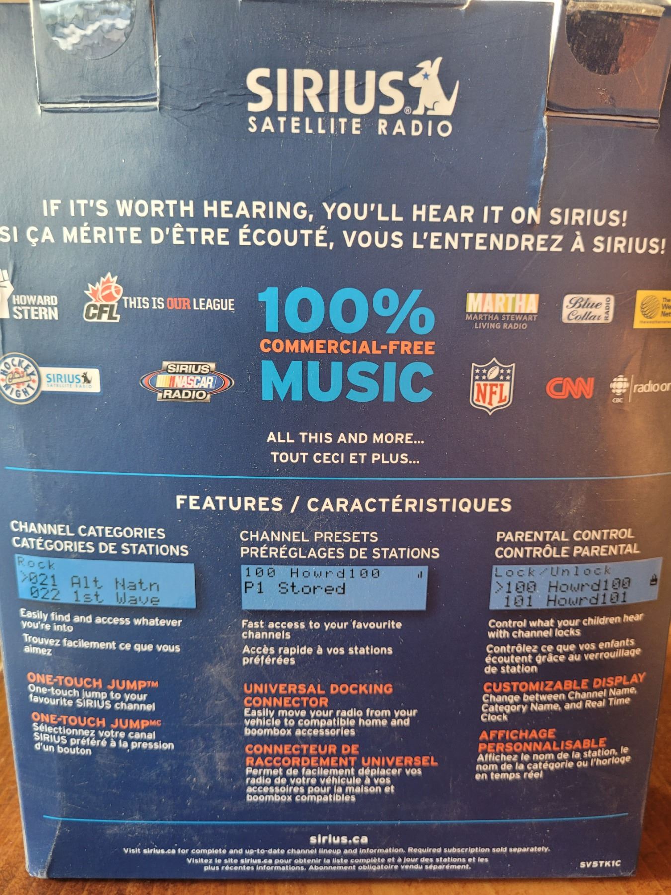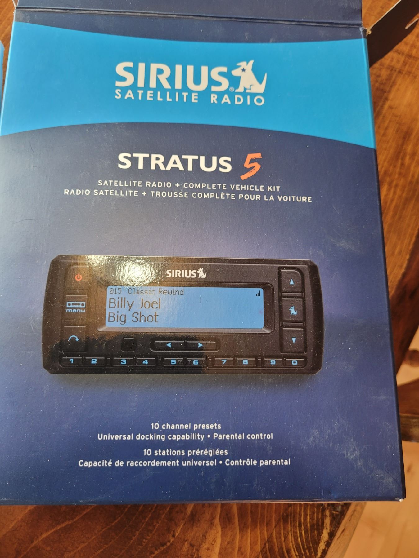 Sirius satellite radio - Stratys 5 model reciever and vehicle kit - Brand new in box, never used, subscription required