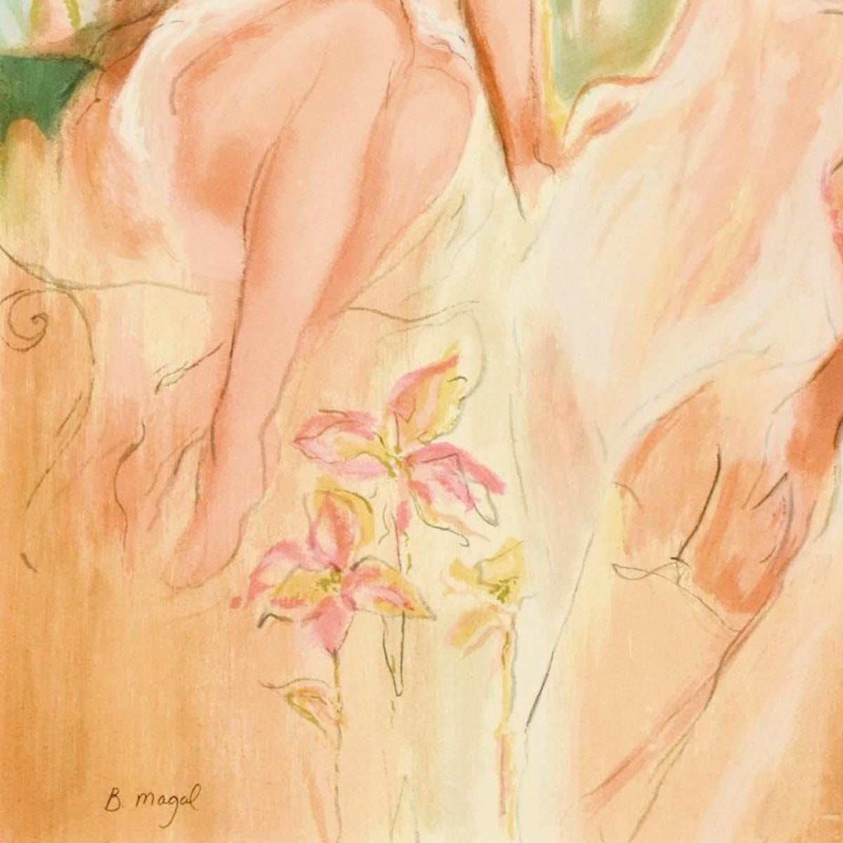 "Sister" is a limited edition serigraph on deckle edge paper, PP numbered 13/55 and hand signed by Batia Magal. This piece comes custom framed. Includes Letter of Authenticity. Measures approx. 27" x 36" (frame), 19" x 25" (image).