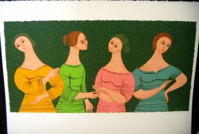 Sisters by Cabral, Flavio. Limited Hand Signed Serigraph on Paper. Dimensions: 14 x 29. Excellent Condition.