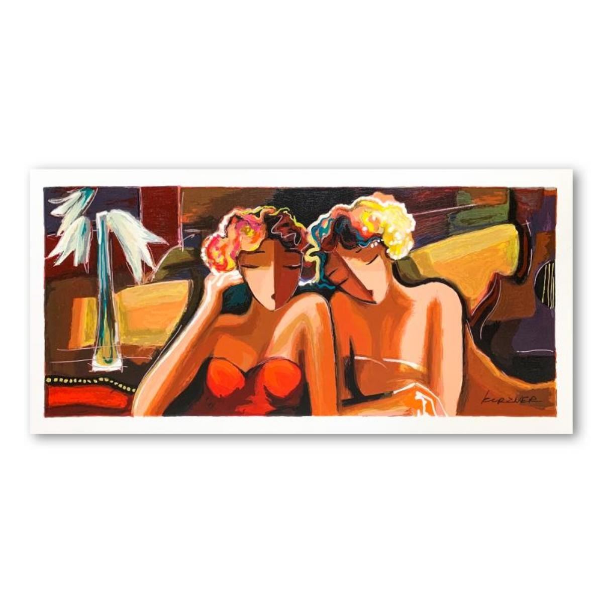 Sisters by Kerzner, Michael. "Sisters" is a limited edition serigraph on paper by Michael Kerzner. It is numbered and hand signed and includes a letter of authenticity. Measures approximately 9.5" x 23" (image).