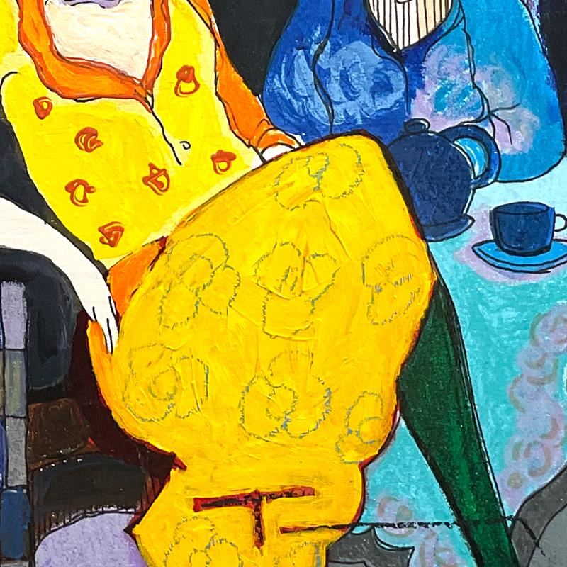 "Sisters" is a one-of-a-kind mixed media over paint on wood by Itzchak Tarkay (1935-2012), hand signed by the artist. This piece comes custom framed. Includes Letter of Authenticity. Measures approx. 13.5" x 13.5" (frame), 8.5" x 8.5" (image).