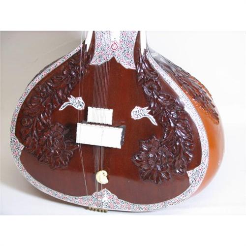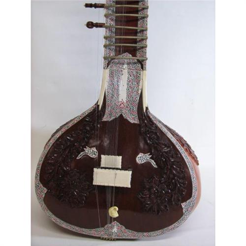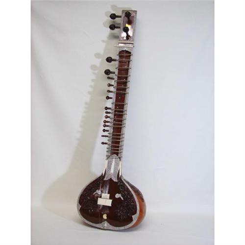 Sitar, Made in India. Ravi Shankar Style. 50 H x 15 W. Condition: missing some strings, rest is missing on back of neck.
