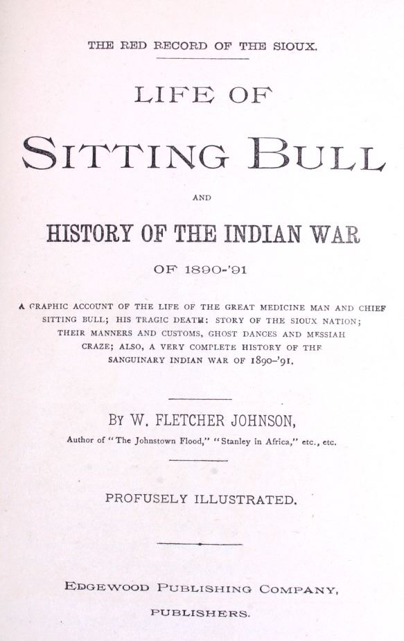 This is an original rare first edition of "Sitting Bull and the Indian War" by W. Fletcher Johnson. The front cover is exquisite showing a portrait of Sitting Bull with an Indian War scene below and Major General Miles, U.S. Deputy Bartlett. Marked on the cover Ghost Dance. This book was printed in 1891. It tells the story of Sitting Bull and his tragic death. The book contains several illustrations as well. The book is in good condition with a fantastic designed cover. It measures 5.5" x 8