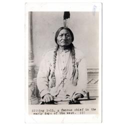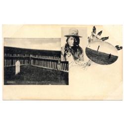 1) Real photo copy view. Upper right and lower left corners abraded from prior mounting. [D2+] 2) A nice gravure collage with 3 views by Fiske-- Sitting Bull's grave, a portrait, and "dancing and battle ground where Sitting Bull was killed." [3]