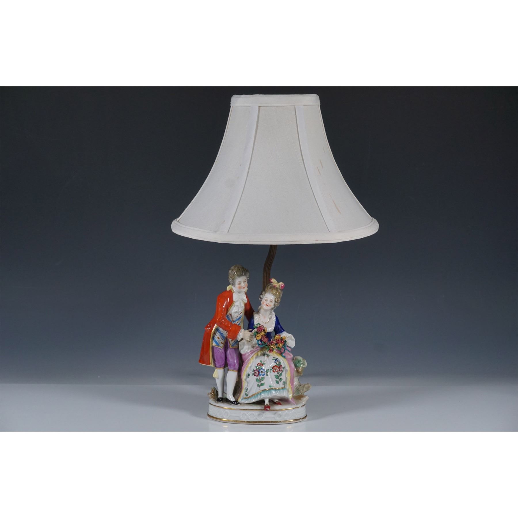 Sitzendorf Porcelain Figural Table Lamp, Courting Couple