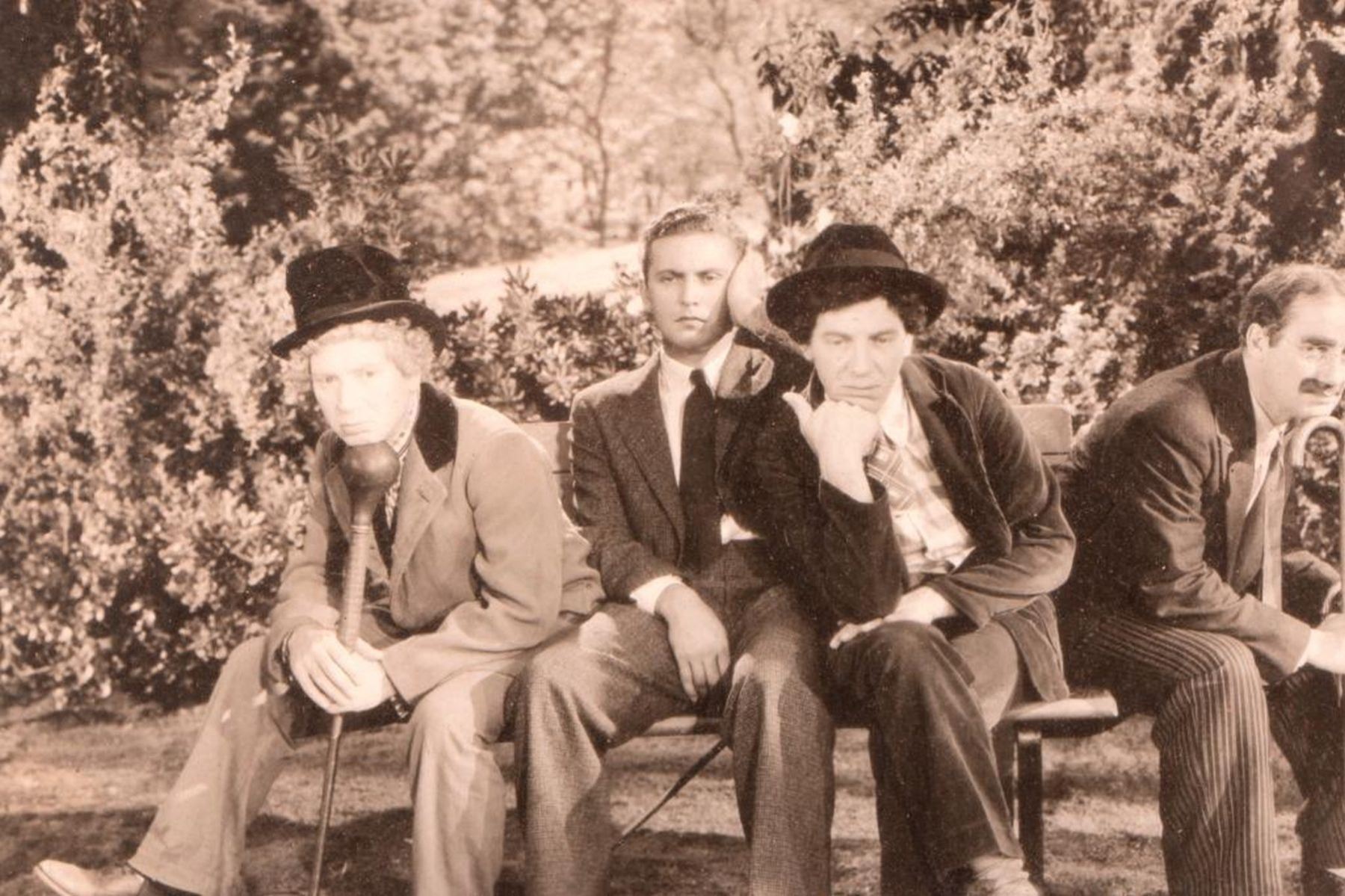Six 1930's studio shots including The Little Rascals, The Marx Brothers, Humphry Bogart and a signed Jimmy Durante measuring 13 1/4 inches x 11.