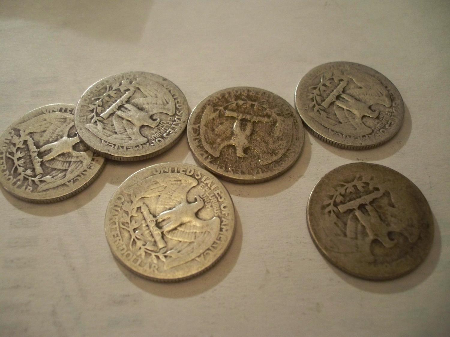 Six 1940 Washington Quarters