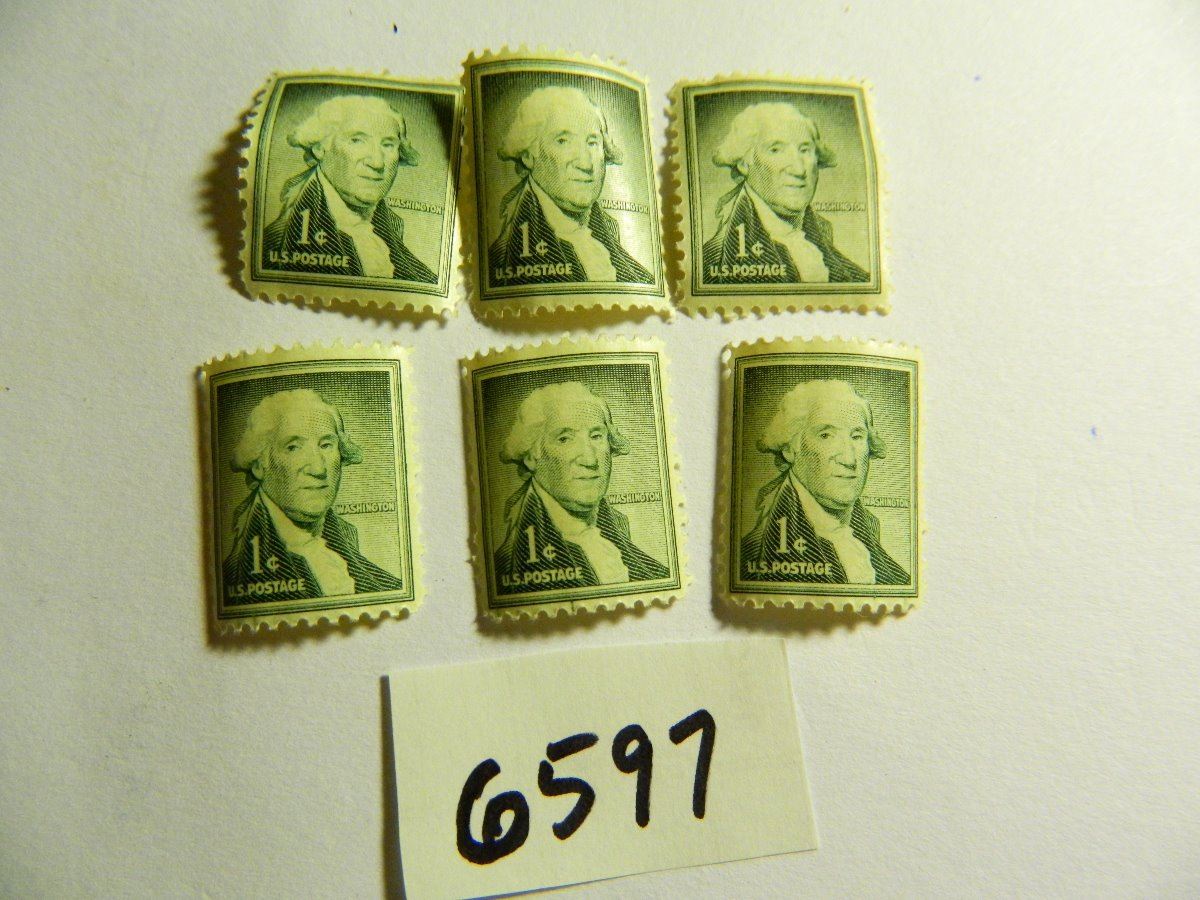 Six (6) 1950's George Washington One Cent stamps, all un-used, all one money