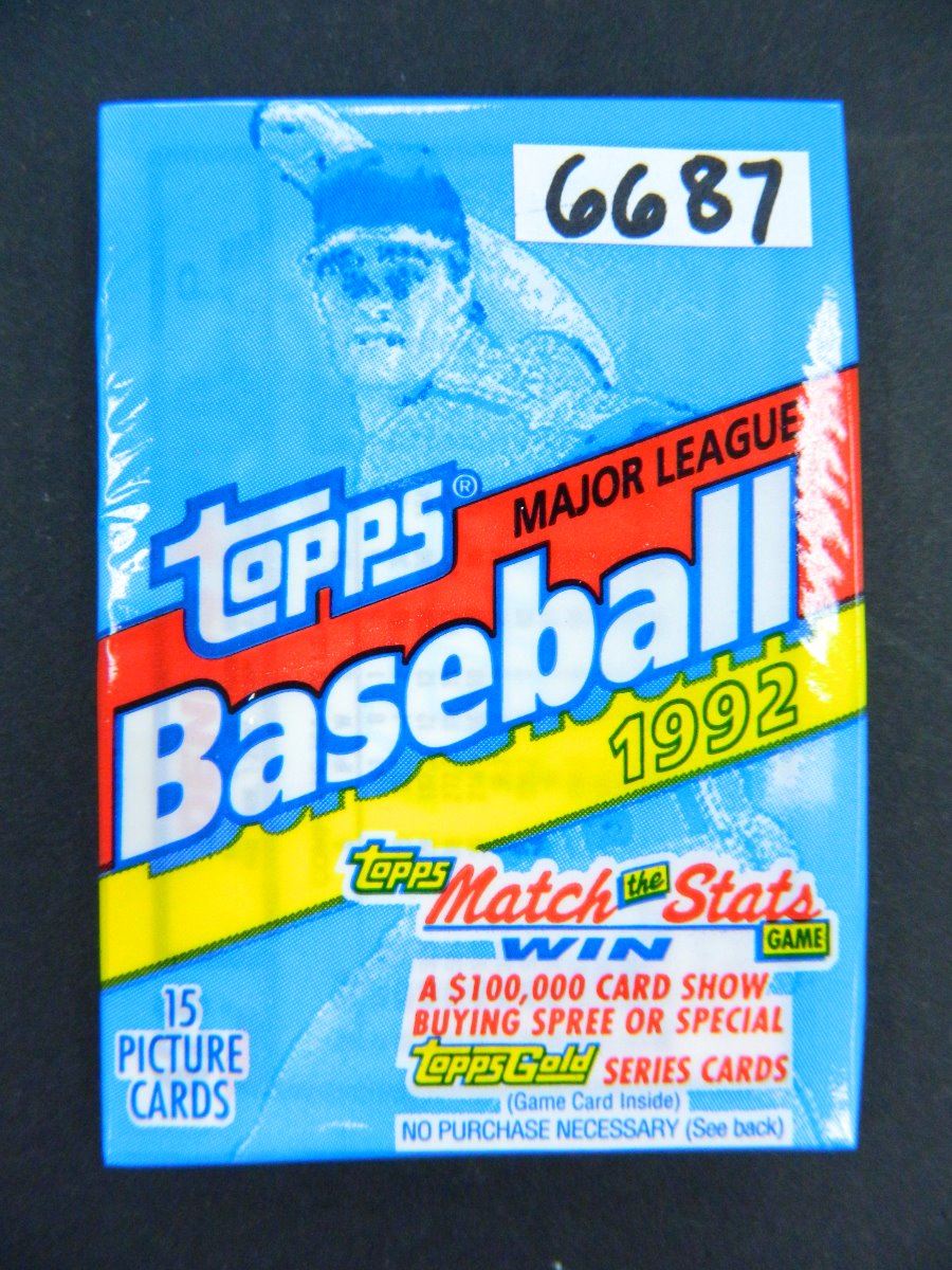 Six (6) Unopened Packs of 1992 Topps Baseball Cards, 15 cards per pack, All One Money