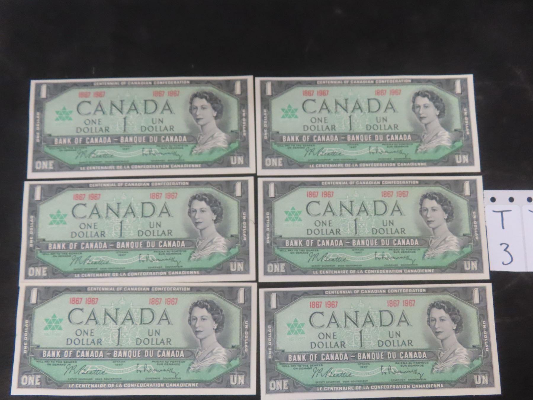 An excellent multi-note lot for collectors of Canadian paper money or 1967 Centennial memorabilia. Condition as shown in photos.