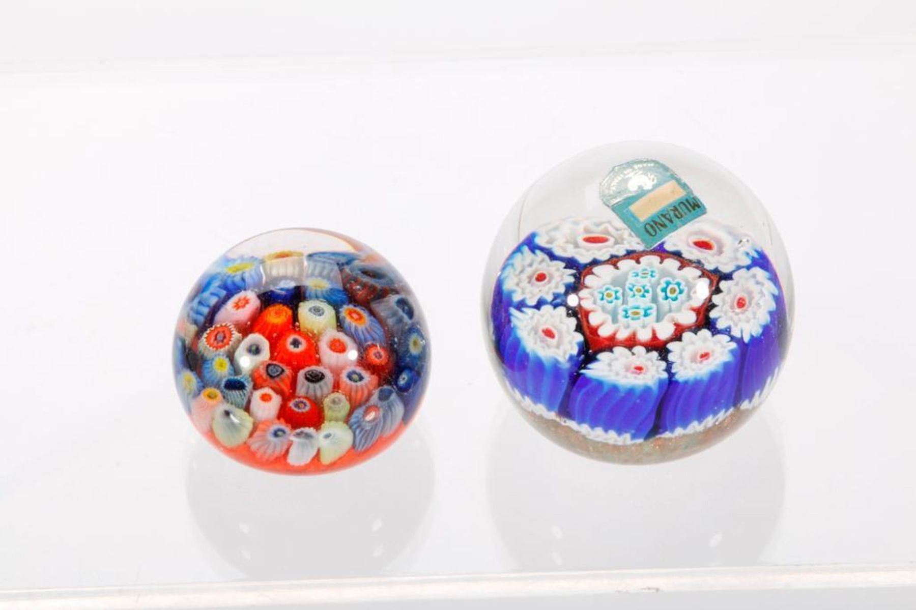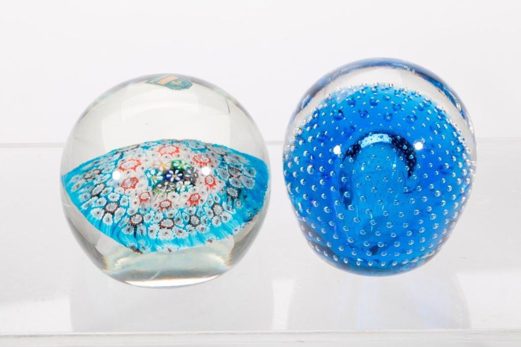 Six Art Glass paper weights, Murano, Strathearn, etc.