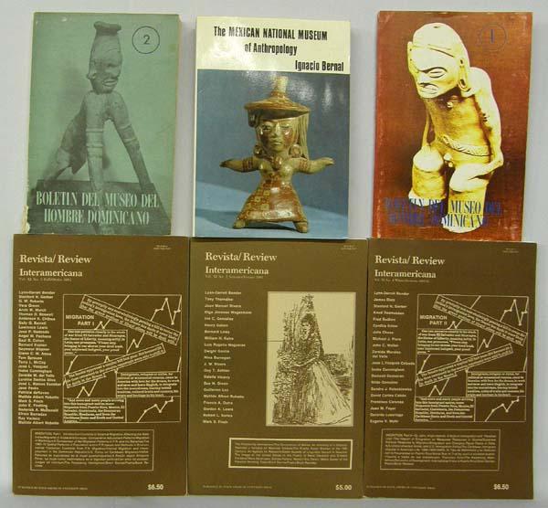 Six Books, The Mexican National Museum of Anthropology by Ignacio Bernal, Boletin Del Museo Del Hombre Dominicano, Boletin Del Museo Del Hombre Dominicano 1972, Revista/Review Interamericana Vol. XI No. 2 Summer/Verano 1981, Revista/Review Interamericana Vol. XI No. 4 Winter/Invierno 1981/82, Revista/Review Interamericana Vol. XI No. 3 Fall/Otono 1981, largest measures 10'' x 6.75''. SHI $20.