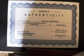Hand Signed and numbered colored etching lithograph 656/900. Framed 30x30, Image 19x19