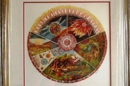 Hand Signed and numbered colored etching lithograph 656/900. Framed 30x30, Image 19x19