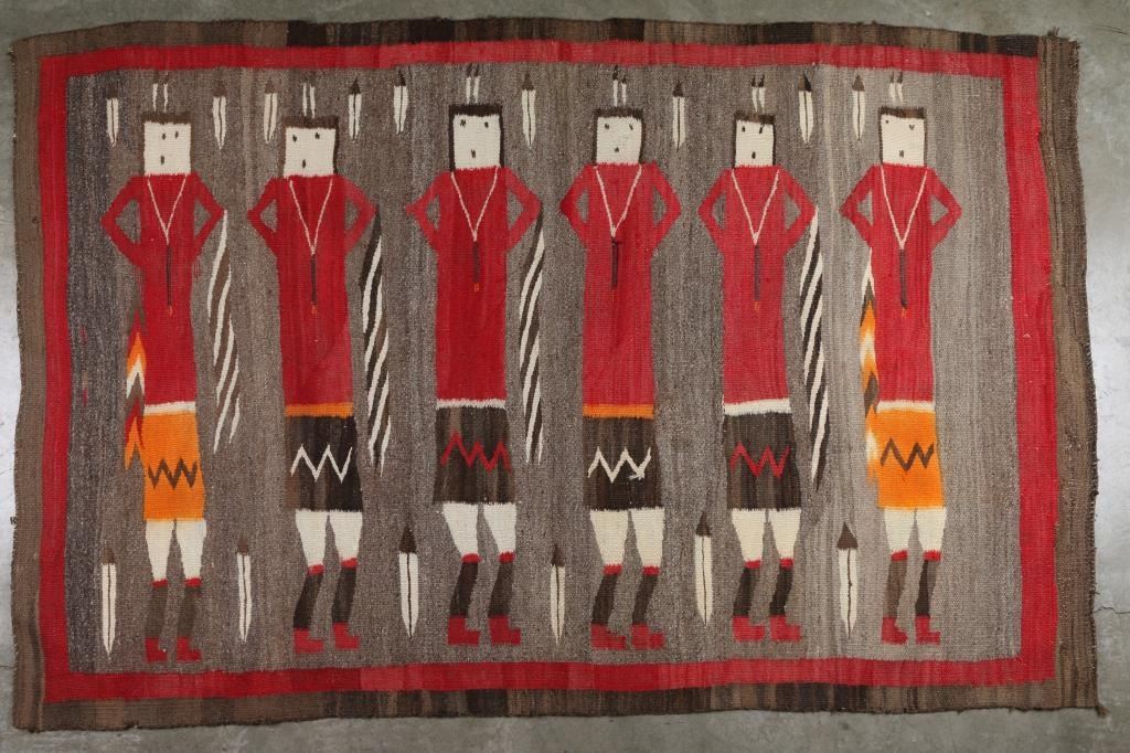 all natural in red, black, gray and white, measures 58x39". In overall fair to good condition. Slight fading and minor edge wear.