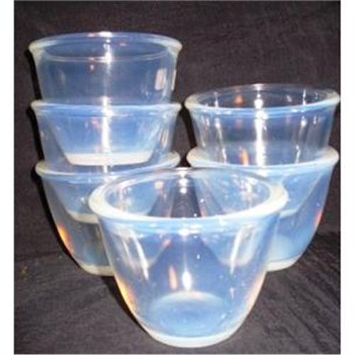 We are offering you six (6) fantastic Fry Ovenware Custard Cups all for one money. Each custard cup is in Excellent condition with no chips, cracks or dings and they each measure 3.50" in diameter and stand 2.50" tall. Each custard cup is marked on the bottom with the familiar Fry Logo as well as catalogue #1927-6.