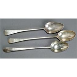 Six George III Silver Serving Spoons, The first by John Pittar, Dublin, 1757 engraved with a cr...