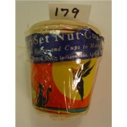 Six Halloween nut cups. 2 oz. size in cellophane with label. Package has been opened, but cups are unused. Beach & Arthur, Inc. Indianapolis.
