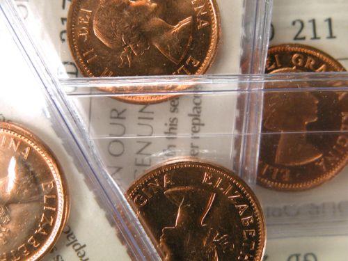 1955 Shoulder Fold three pieces and 1959, all ICCS MS-63 Red. Plus 1953 No Shoulder Fold two pieces ICCS MS-60 Cleaned (dipped) and 1949 A to Denticles ICCS VF-30 Cleaned (dipped). Total seven pieces