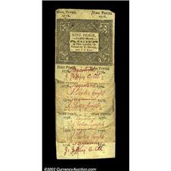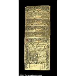 Six June 19, 1776 Connecticut Notes. All six notes are 9d examples, and all six have a slit cancel..