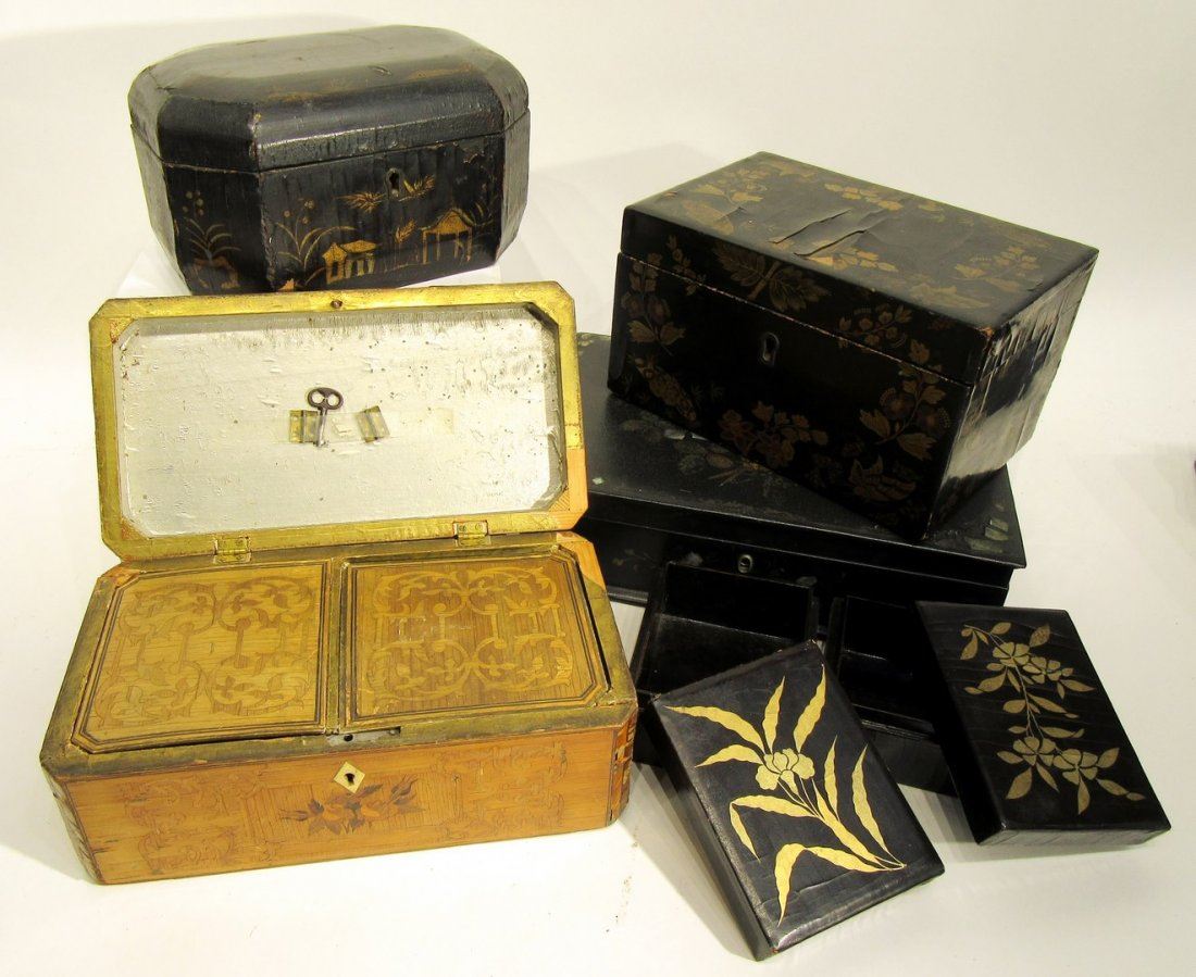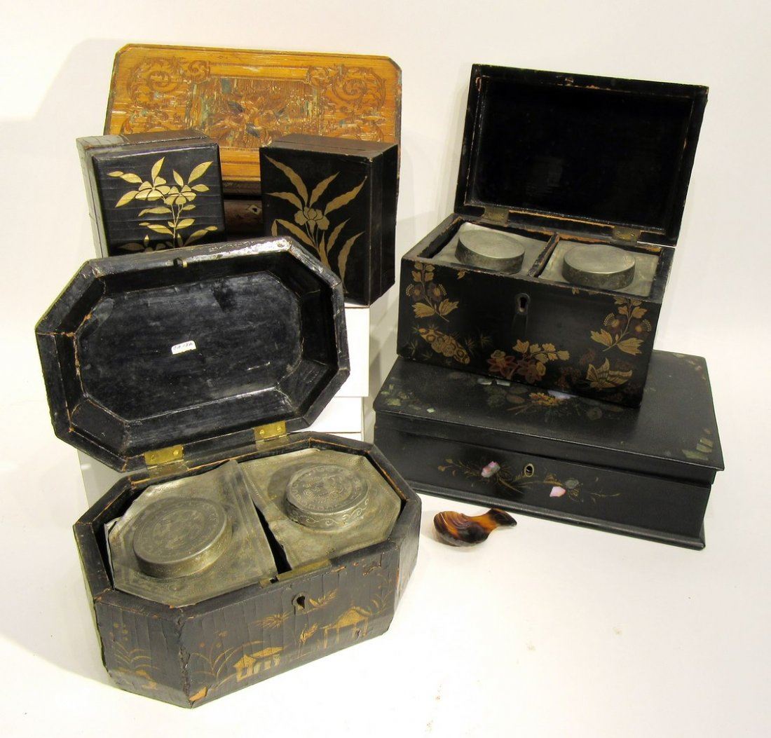 Six Lacquer And Inlay Boxes And Tea Caddys: