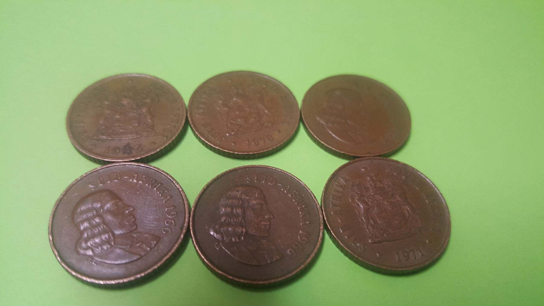 The 3 Coins after 1970 feature the South Africa coat of arms with the motto "Ex Unitate Vires" (Power Through Unity)' legend in Afrikaans and English around, date below.