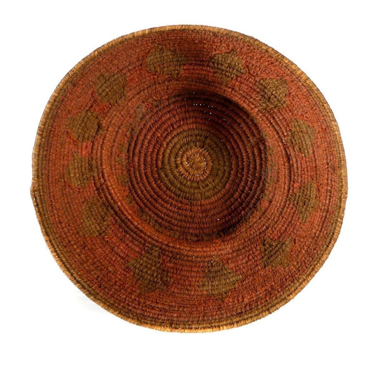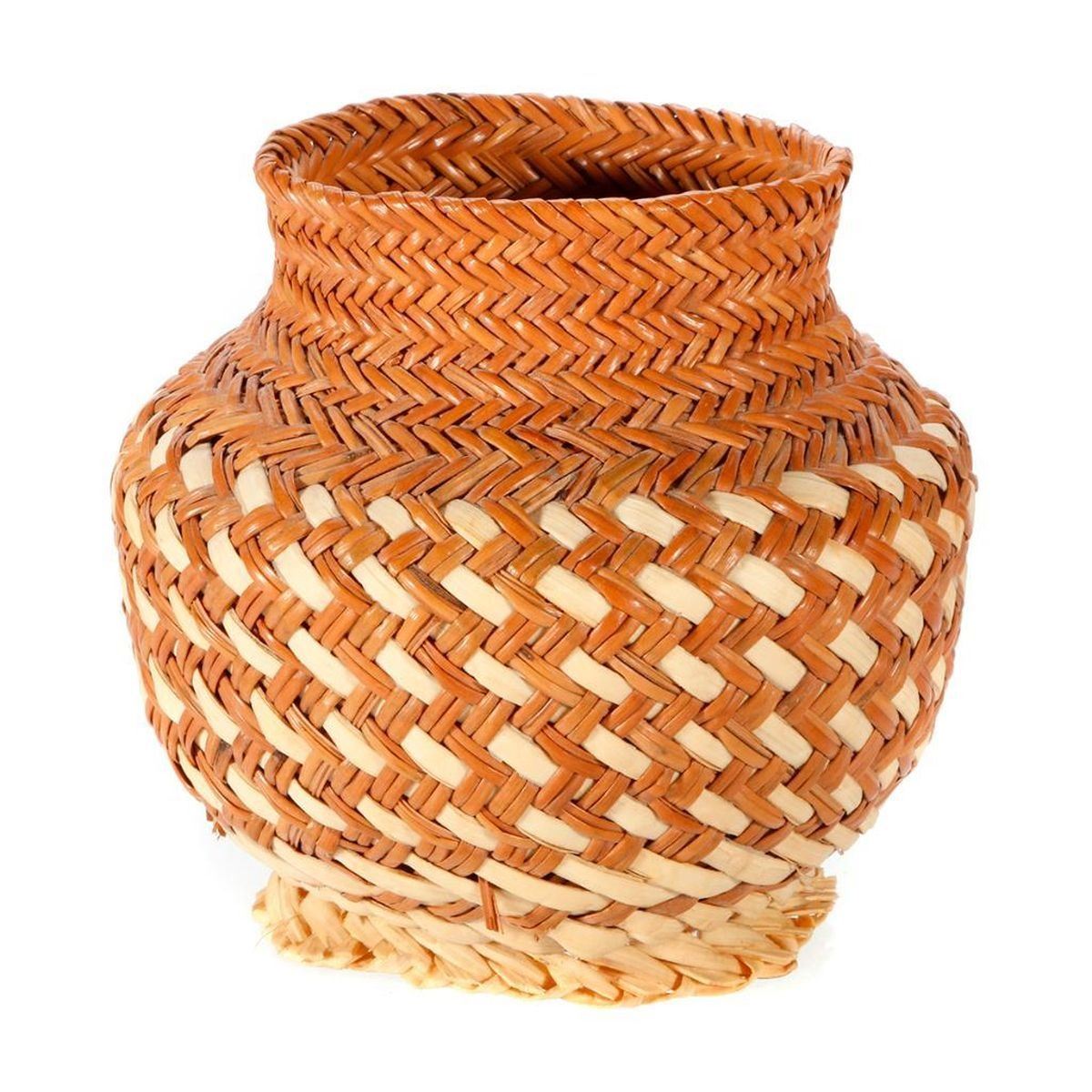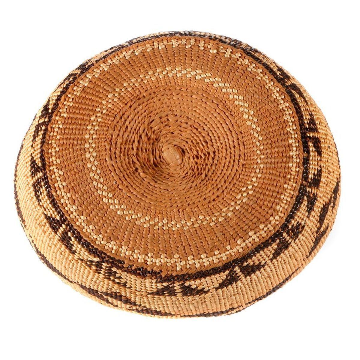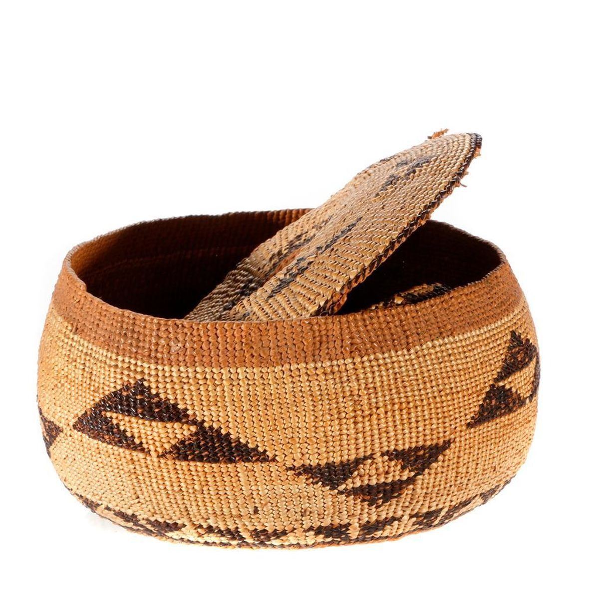 Six Native American baskets one with lid as shown, the largest measuring 3 1/2 inches high x 6.