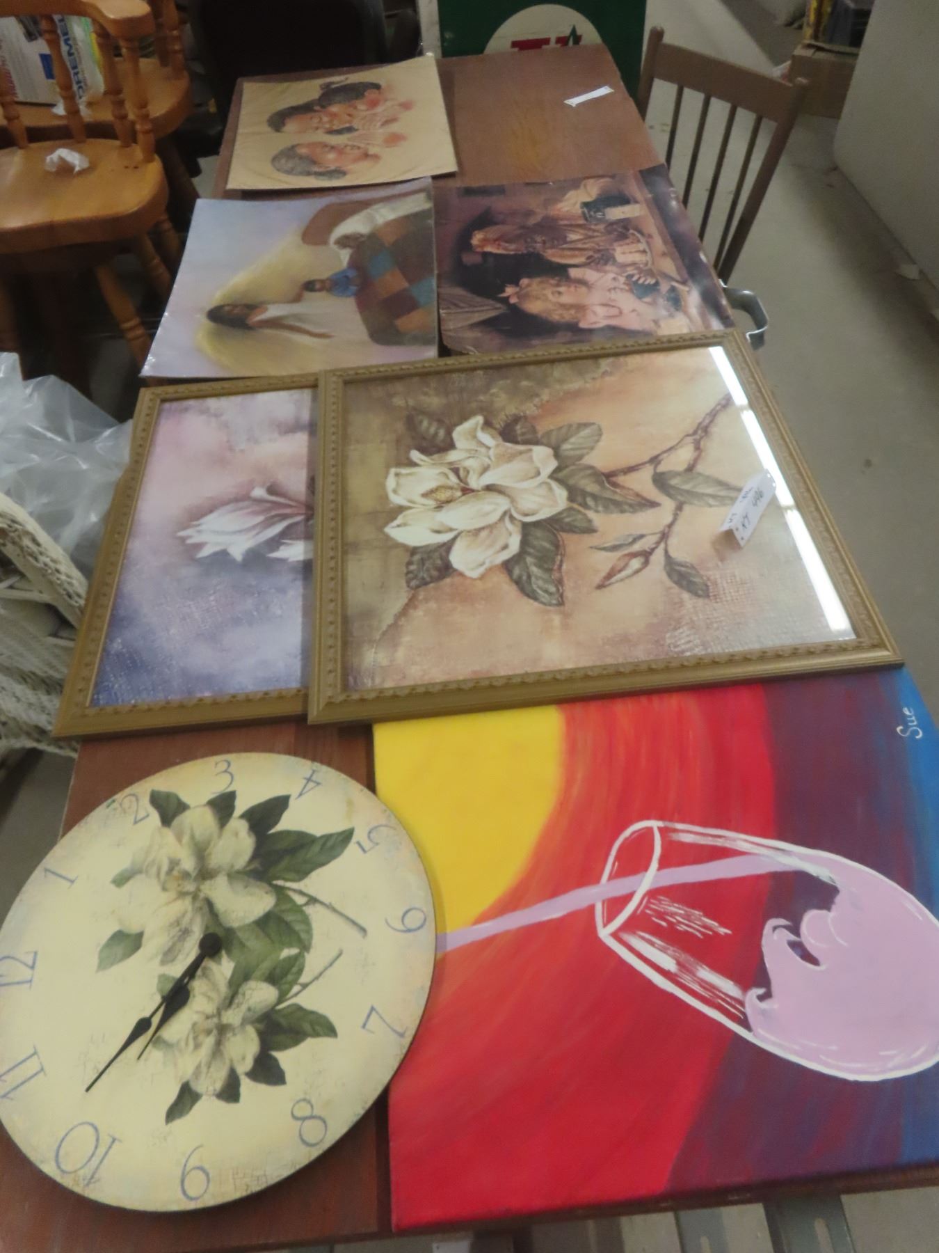 Six Pictures (Largest 22" x 22") and Wall Clock