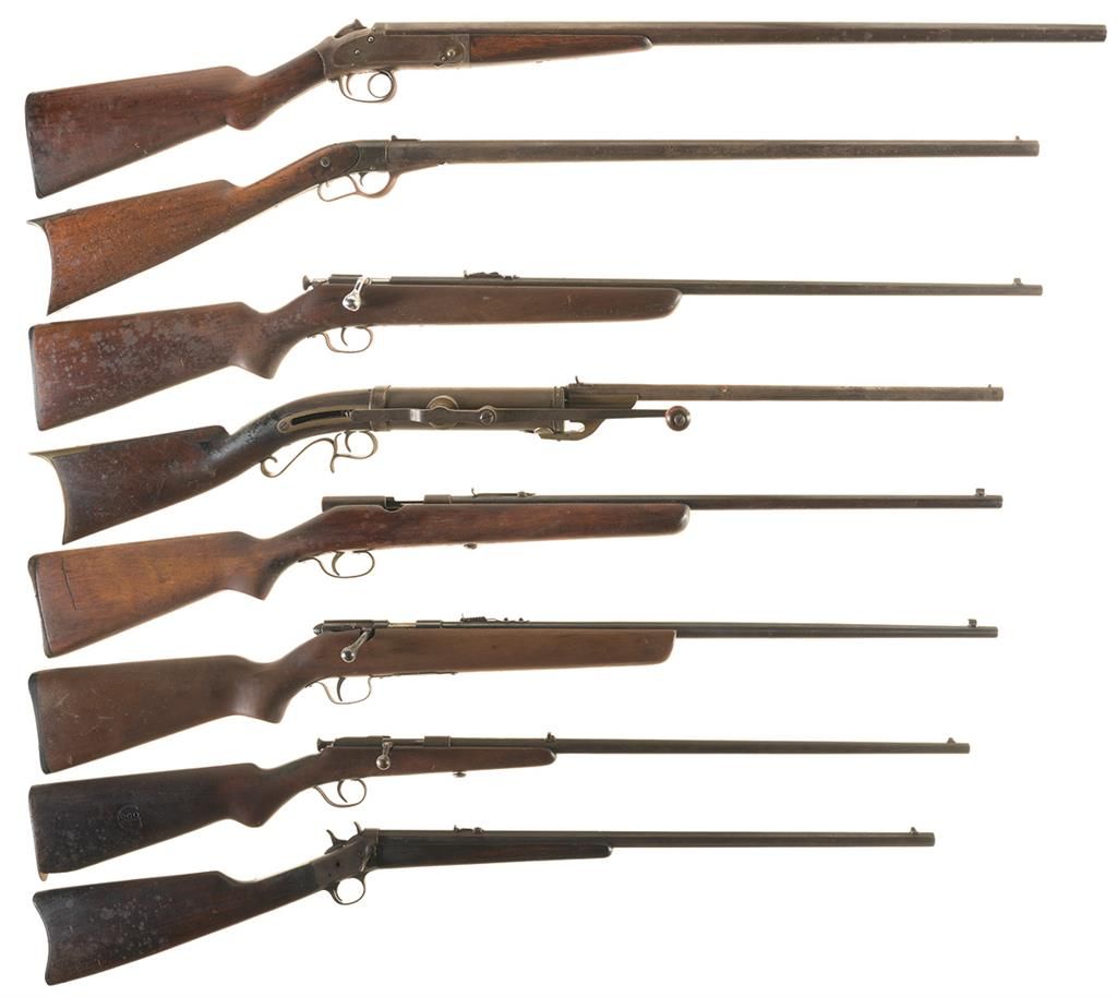Six Rifles One Shotgun and One BB Rifle -A) Iver Johnson Single Shot Shotgun