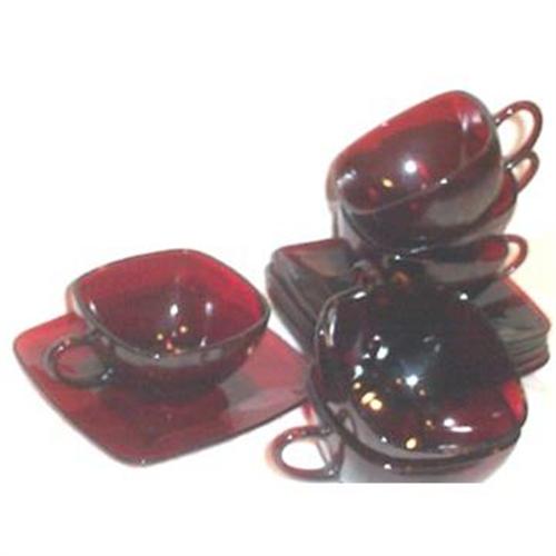 We are offering you six (6) lovely Royal Ruby Charm Shaped Cups and Saucers all for one money. Each cup and saucer is in SUPERIOR condition with no chips, cracks, or dings and each cup measures 3.75" in diameter and stands 2.25" tall and each saucer is 5.50" in diameter.