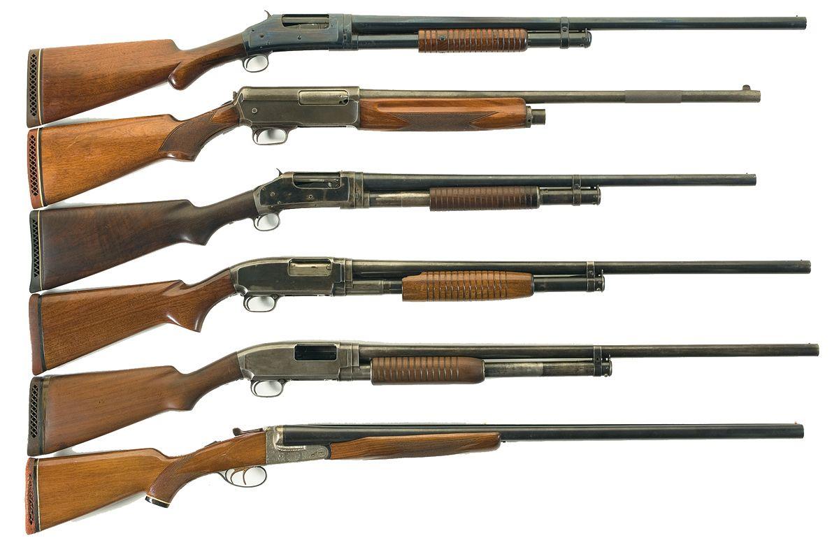B) Manufactured in 1912. Standard markings and features. Gauges at 2 3/4" chambers and marked full choke on barrel. Checkered pistol grip stock and forearm with 1 1/2" crack on left just in front of the receiver and with Winchester recoil pad. Length of pull 14 1/2".