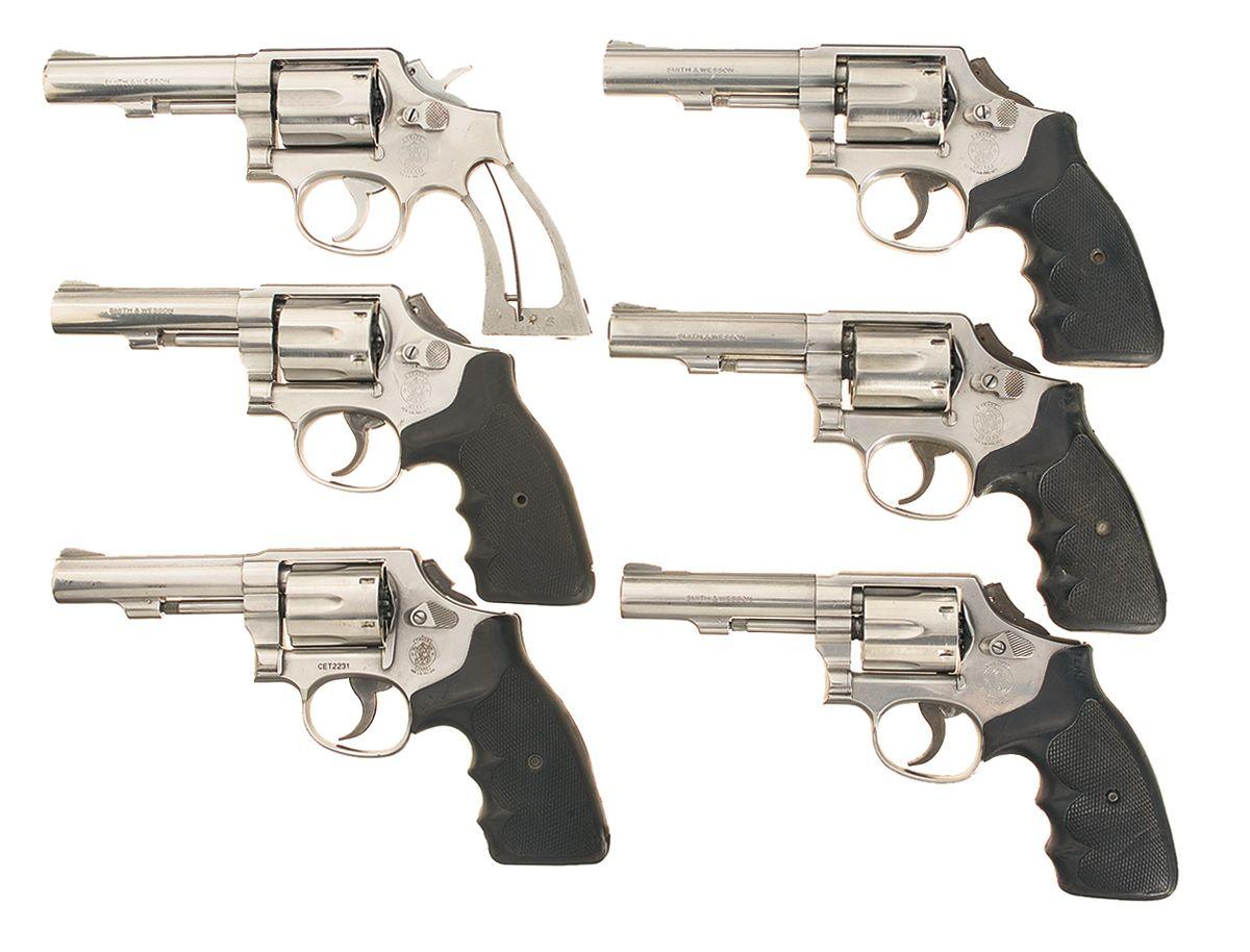 B) Introduced in 1970 with standard markings and features. The notched area of the front sight has been painted orange, has bobbed hammer. Complete with Smith & Wesson soft zipper case.