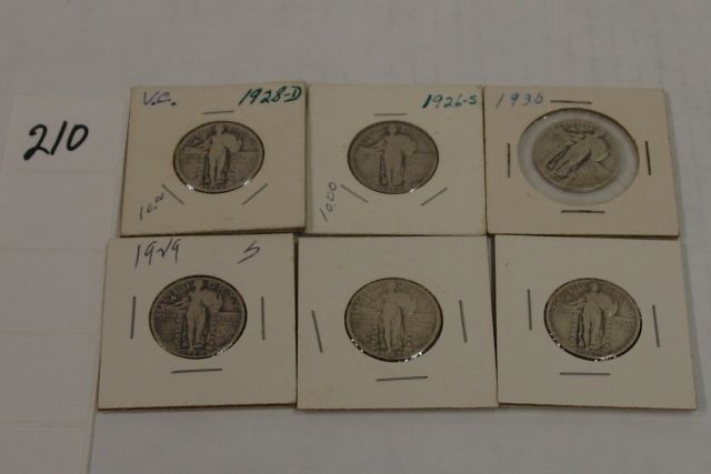 Six Standing Liberty (Flying Eagle) Quarters - various dates