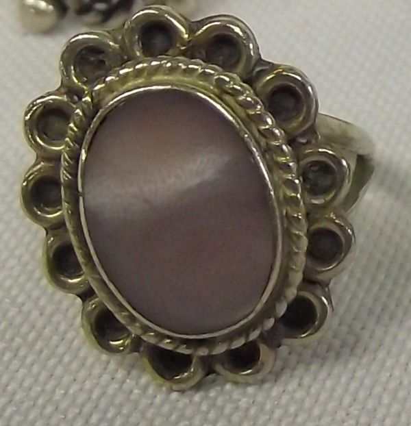 Six Sterling and Misc. Stone, Turquoise or Shell Rings. Sizes vary from 5 to 8.