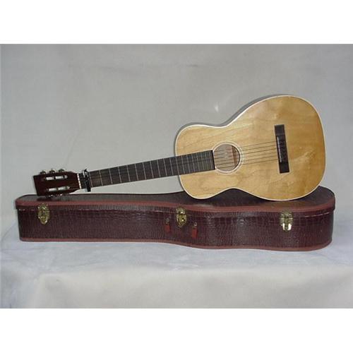 A Guitar, 38" long x 13 1/4" wide x 3 7/8" deep, in good condition. 6 Nylon strings with good tone. The finger board is level and there is no warping. Label on interior reads: This guitar is designed for use only with nylon or gut strings do not use steel strings. The guitar has no makers name. Comes with case (in fair condition) as shown in photo. I originally described this as a tenor flamengo guitar but have been told that is not the case. the guitar is in good condition there are no cracks or splits and the tone is good.