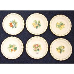 Six Victorian plates, hand painted with fruits, 25cm diameter