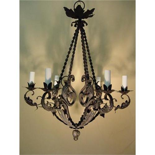 wrought iron six arm chandelier,two available.