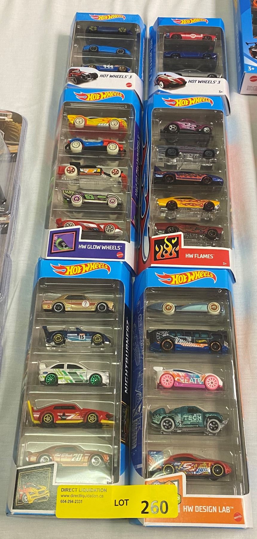 Six boxes of Hot Wheels die-cast - HW Design Lab/ HW Glow Wheels/ HW Flames etc.