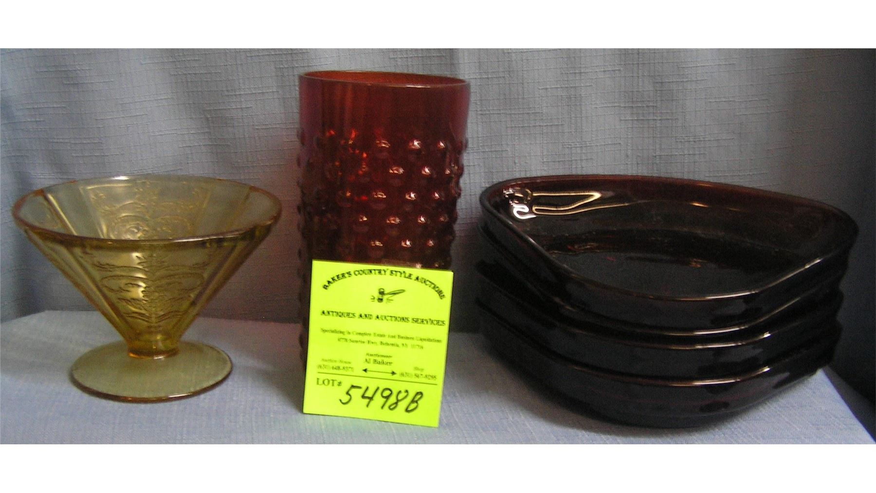 Baker's Country Style Auctions Terms and Conditions of Sale By submitting your bid, you agree that: ? You have read and agree with the Auctioneer Terms and Conditions below and the Liveauctioneer's terms of use agreement ? You agree to pay a buyer's premium of 23% and any applicable taxes and shipping (this includes 5% online transaction fee) Auction Terms of Sale All bidders and others attending this auction agree that they have read and fully understand these terms and conditions and agree to be bound thereby. All accepted bids are considered a binding contract to buy. PLEASE NOTE: Shipping for all winning Liveauctioneer's bidders on auction night will begin within 2 business days and since we are a weekly auction house we ask that you please register with a credit card that will be sufficient to cover your purchases and shipping cost on auction night. All merchandise purchased on auction night will be packed and shipped to you within 2 business days and a paid invoice will be attached to your package in the form of a packing slip note any auction bills not paid in full on auction night will be subject to a $10.00 per day late fee added to all unpaid invoice balances for clerking and storage so please be sure the credit card you register with is sufficient enough to pay your total invoice balance, thank you. ALL SALES ARE 'AS IS', 'WHERE IS' & ALL SALES ARE FINAL. Identification: All bidders are required to have a Bidder Number provided by the auctioneer. Prospective bidders must provide complete contact information including: ? Providing an approved (official) photo ID (state issued driver's license preferred), including name and complete address. ? Full contact information; including phone number(s), & email address(s) and/or approved credit card. ? Persons not known to the auctioneer may also be required to provide a deposit (cash and/or approved credit card). Addition to or withdrawal from sale: The auctioneer reserves the right to withdraw from sale any item listed and/or to sell items not listed; and reserves the right to group one or more lots into one or more selling lots or to subdivide lots into two or more selling lots. The auctioneer reserves the right to sell all of the lots in bulk. Dispute between bidders: If any dispute arises between two or more bidders, the auctioneer may decide the same or may immediately put the lot(s) up for sale again and re-sell to the highest bidder. The auctioneer reserves the right to accept or to not accept any bid at the sole discretion of the auctioneer. The decision of the auctioneer as to the winning bidder is final and absolute. The auctioneer and/or his representatives reserve the right to remove any person who impedes the preview and/or the auction. Estimated condition, grade, count, measure or weight: Items are sold by lot; condition, counts, grades, weights, measurements, karats are stated as non-binding approximations. It is the responsibility of the bidder to confirm condition, and all counts, grades, weights, measurements, karats prior to bidding and to bid accordingly. Reserve: The auctioneer reserves the right to reject any and all bids. On lots with a reserve the auctioneer has the right to bid on the part of the seller. Condition of items sold: The auctioneer shall not be responsible for the correct description, authenticity, genuineness of, or defect of any lot and makes no warranty in connection therewith. No allowance will be made or sale set aside on account of any incorrectness, error in cataloging, or any imperfection not noted. No deduction will be allowed on damaged articles. It is the responsibility of the bidder to examine the item(s) during the preview and to adjust their bids accordingly. ALL SALES ARE 'AS IS', 'WHERE IS' & ALL SALES ARE FINAL. Time of Payment: All bills must be paid in full on the day of the sale, before leaving the premises. Manner of payment: All bills must be paid by approved method (cash, or approved credit card) to representatives of the auctioneer at the auction unless otherwise announced. Personal and/or business checks require the advanced approval of the auctioneer and may require additional security or time to clear before the lot(s) are provided. The full purchase price on all lots sold to the buyer must be paid within the fixed time, before the removal of any of the items. Absentee Bidders: Absentee bidders will be required to complete an absentee bidder form and provide a 25% deposit in the form of cash of approved credit card. All absentee bids must be submitted no later than 30 minutes prior to the start of the auction. In the event that the winning bid is the same amount on two or more absentee bidder forms, the earliest date/time bid will be offered the item. The auctioneer reserves the right to proceed to another bidder if the winning bidder defaults, or at the auctioneer's discretion. The auctioneer's determination of the winning absentee bidder is final. Compliance with terms of the sale: In default of payment of bills in full within the time herein specified, the auctioneer in addition to all other remedies allowed by law, may retain all monies received as deposits or otherwise, as liquidated damages. Lots not paid for and removed within the time specified herein may be resold at public or private sale without further notice, and deficiency, together with all expenses and charges of re-sale will be charged to the defaulting purchaser. Additional terms and conditions: Any additional terms and conditions of sale, added by the auctioneer will be announced prior to the auction. Removal: Removal is at the expense, liability and risk of the purchaser. Lots will be provided only on the presentation of the paid bill. Auctioneer will not be responsible for goods not removed within the time specified, and for any item not removed by the purchaser within the time specified, the auctioneer may remove and store the items at the expense of the purchaser. Non-delivery responsibility: The auc