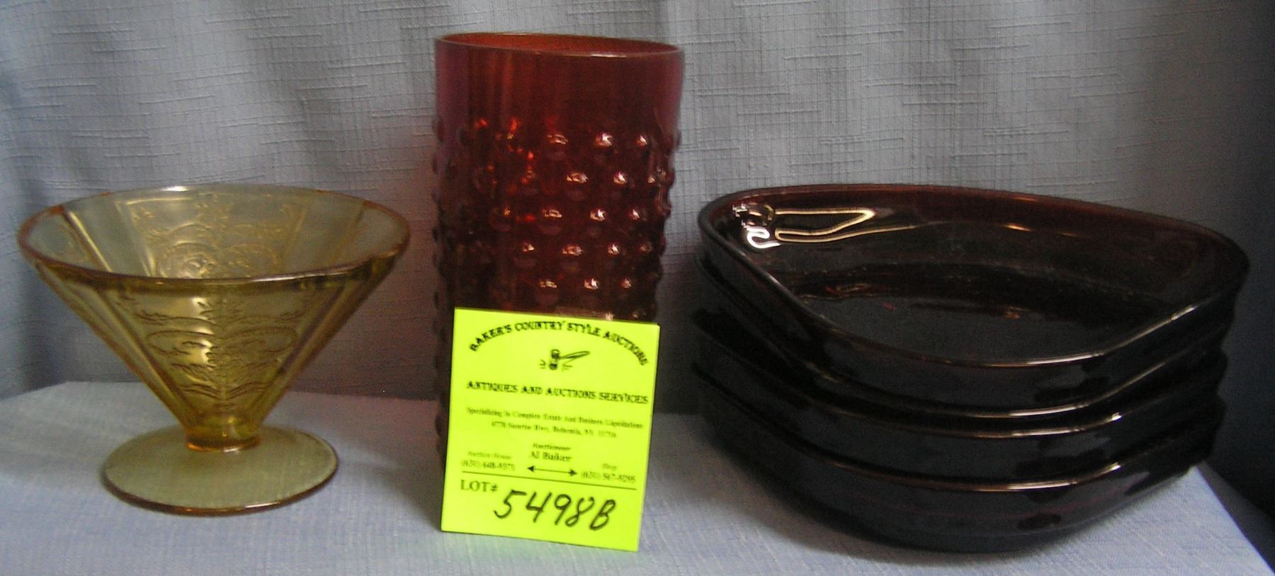Six piece group of depression and art glass est. value $35.00-$45.00