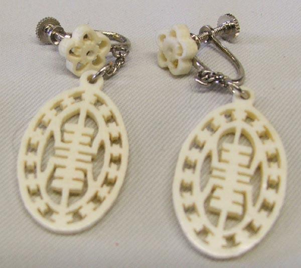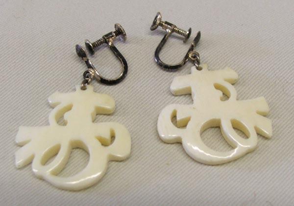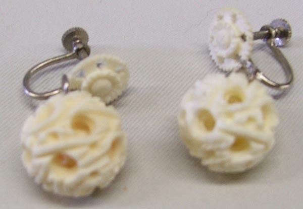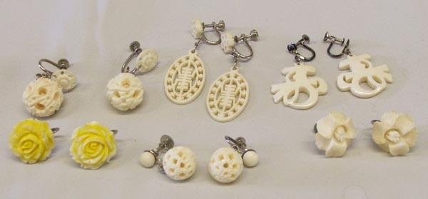 Six pr.Carved Ivory Screw back Earrings, largest measures approx. 1.5''. SHI $15.