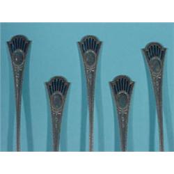 Six silver Jugendstil spoons, openwork fan, Dutch,