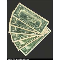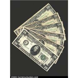 Six various $20 Feds: 1928B, Fr-2052-G, VF-XF; 1934, Fr-2054-C, XF; 1934C, Fr-2057-L, VG; 1950, Fr-2