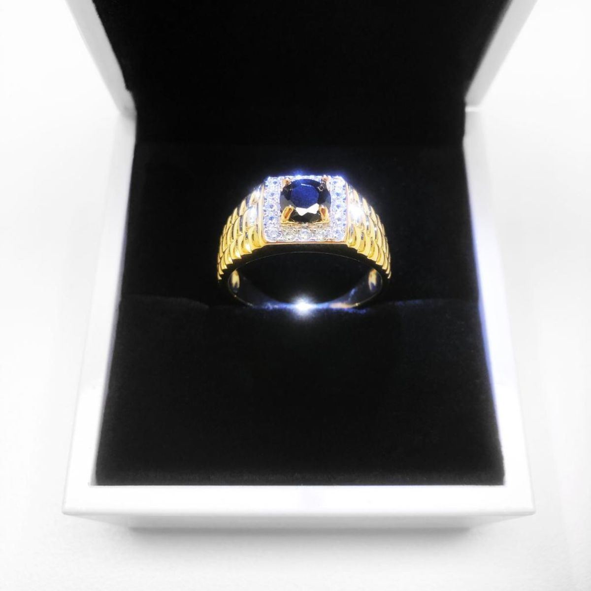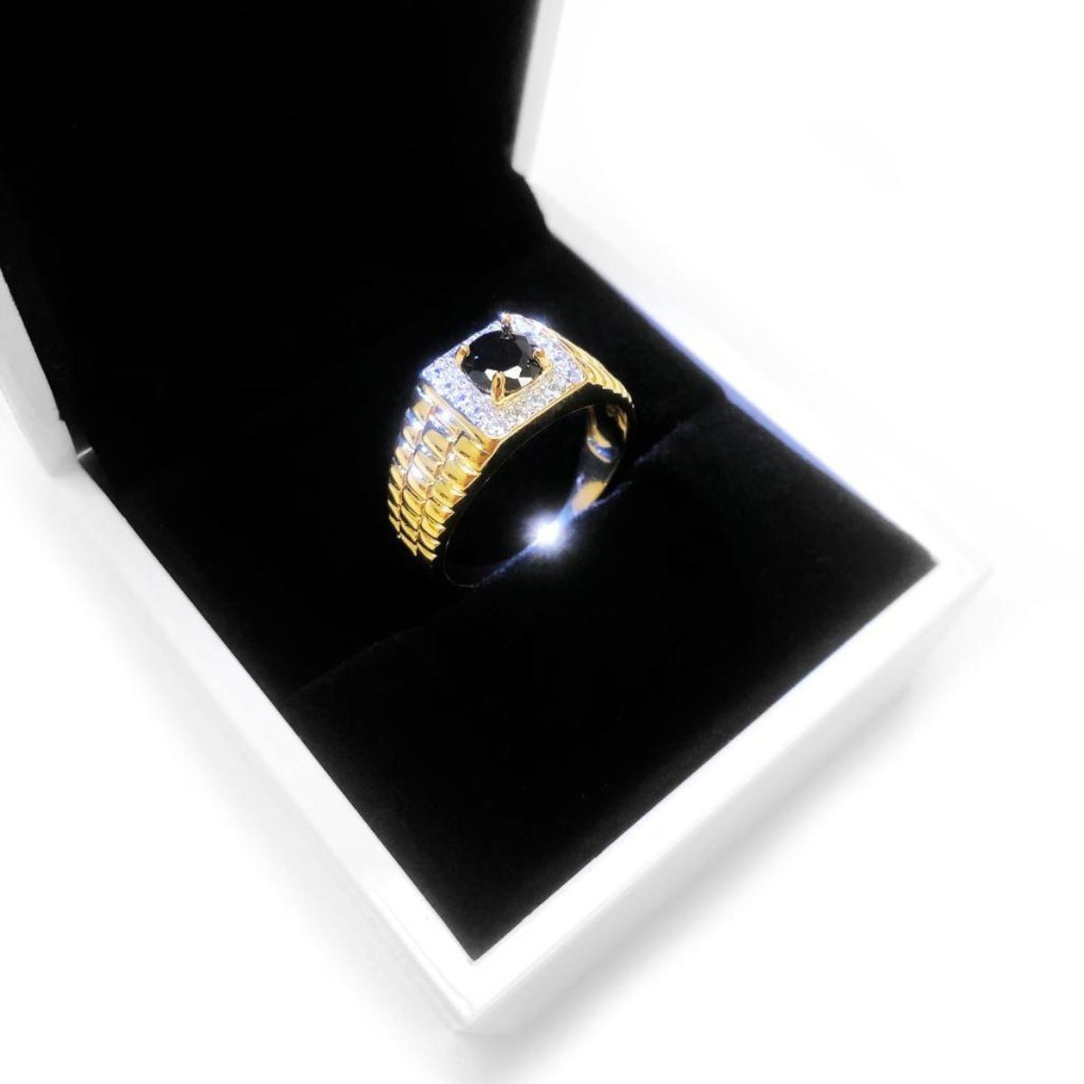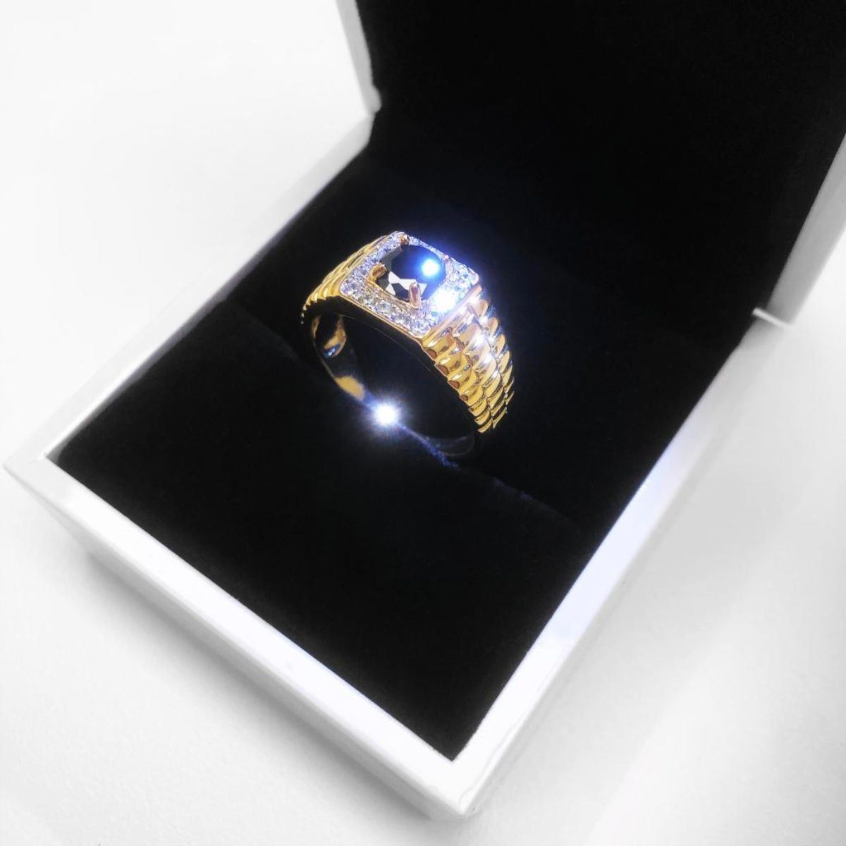 Size 10 Mark S925 Gold Plated Black Stone Men's Ring With LED Ring Box. View Photos For Further Details.