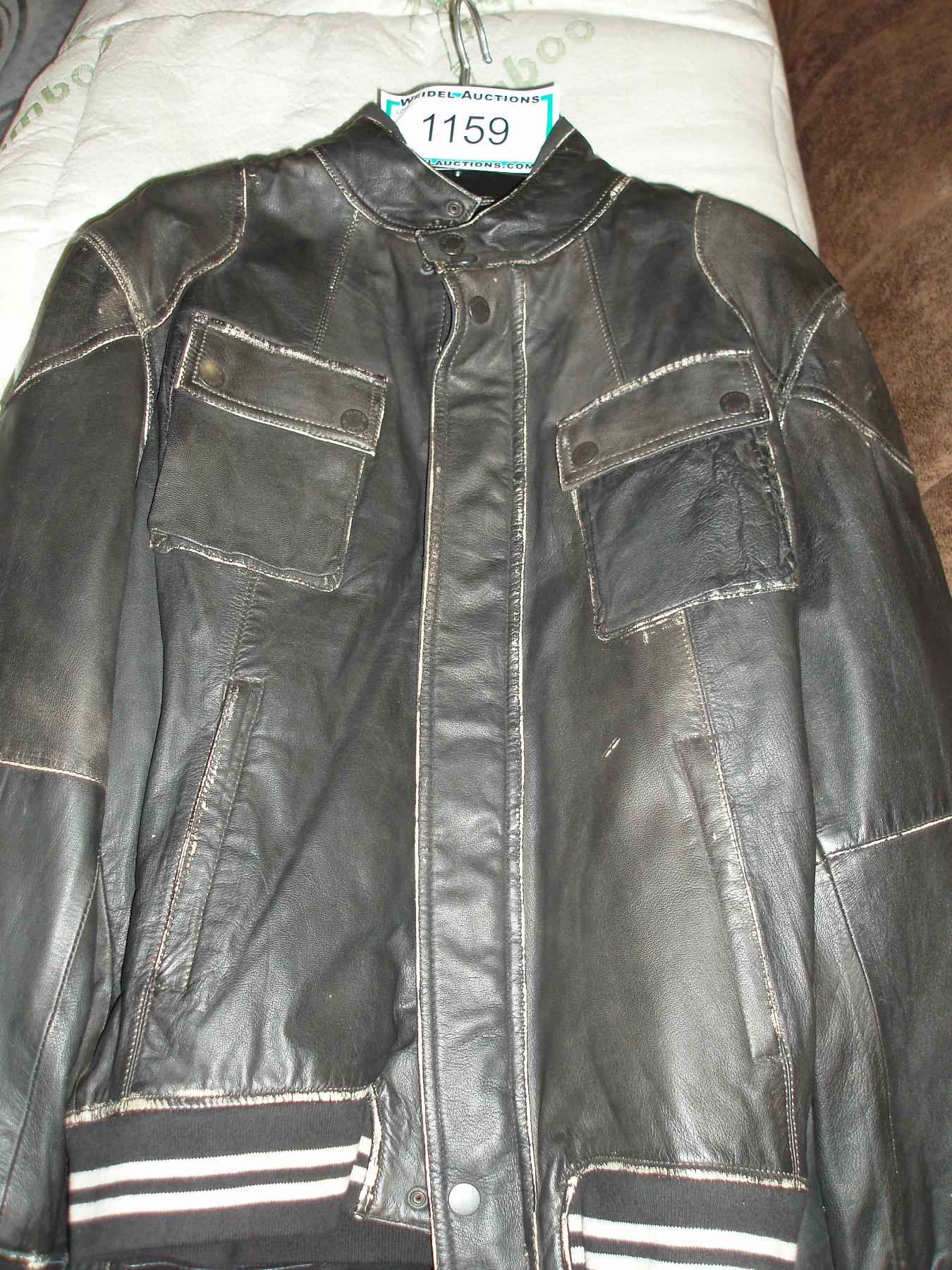 Size 44 - ELZEIN Black Leather Jacket with buttons and zipper