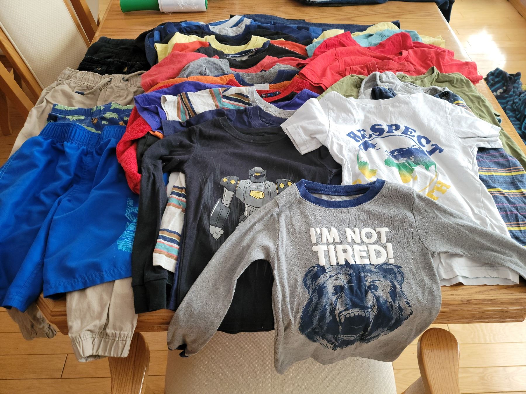 Size 6 boys clothes - 28 shirts, 3 pants, 1 PJ shorts, 1 swim trunk, 1 button up jacket