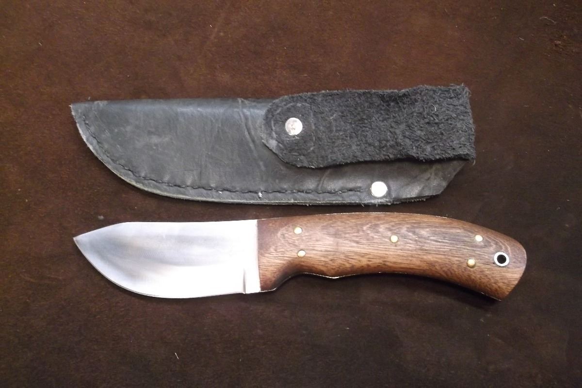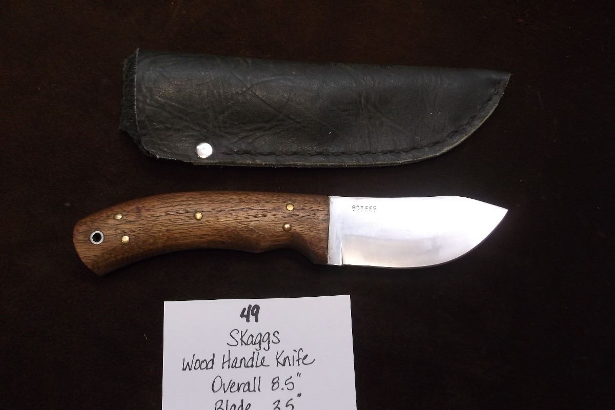 Skaggs Wood Handle Knife- Overall 8.5"- Blade 3.5"- Sheath