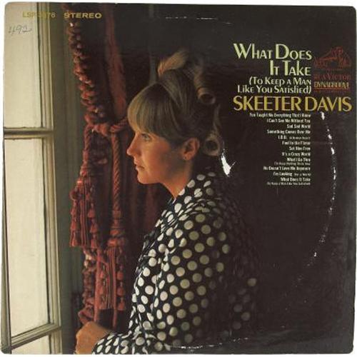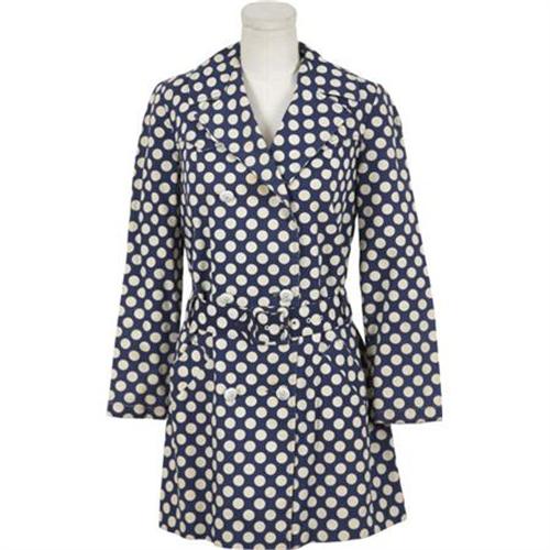 <B>Skeeter Davis Jacket with LP.</B></I> A blue jacket with white polka dots and matching belt, worn by the singer on the cover of her 1967 LP <I>What Does it Take (To Keep a Man Like You Satisfied).</B></I> In Very Fine to Excellent condition, accompanied by a copy of the album.<BR><BR><b>Shipping:</b> Clothing, Costumes & Jerseys (<a target="_blank" href="http://www.heritageauctions.com/common/shipping.php">view shipping information</a>)